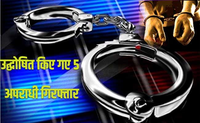 अलग-अलग मामलों में उद्घोषित किए गए 5 अपराधी गिरफ्तार