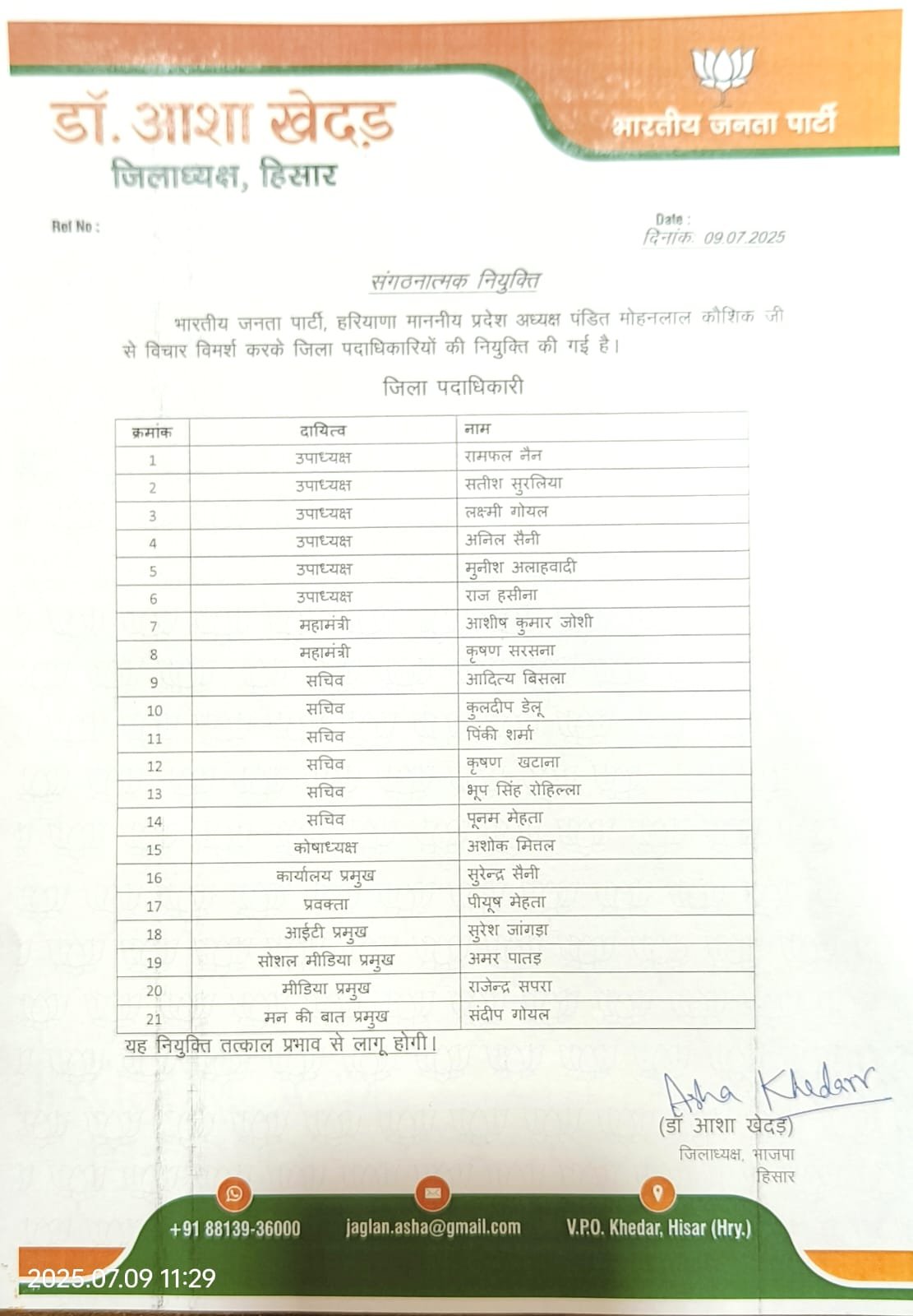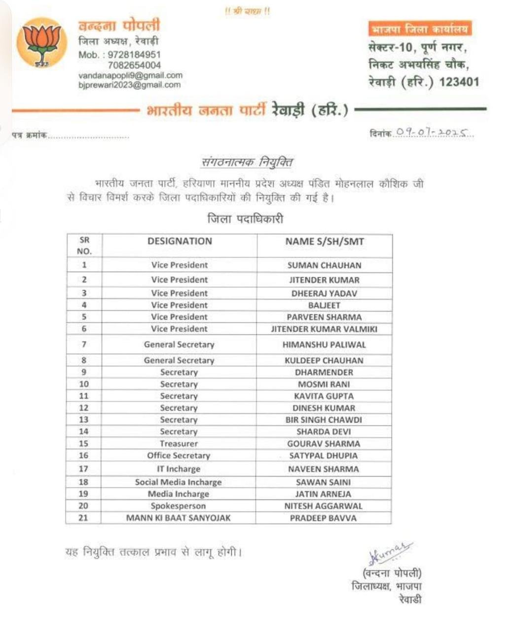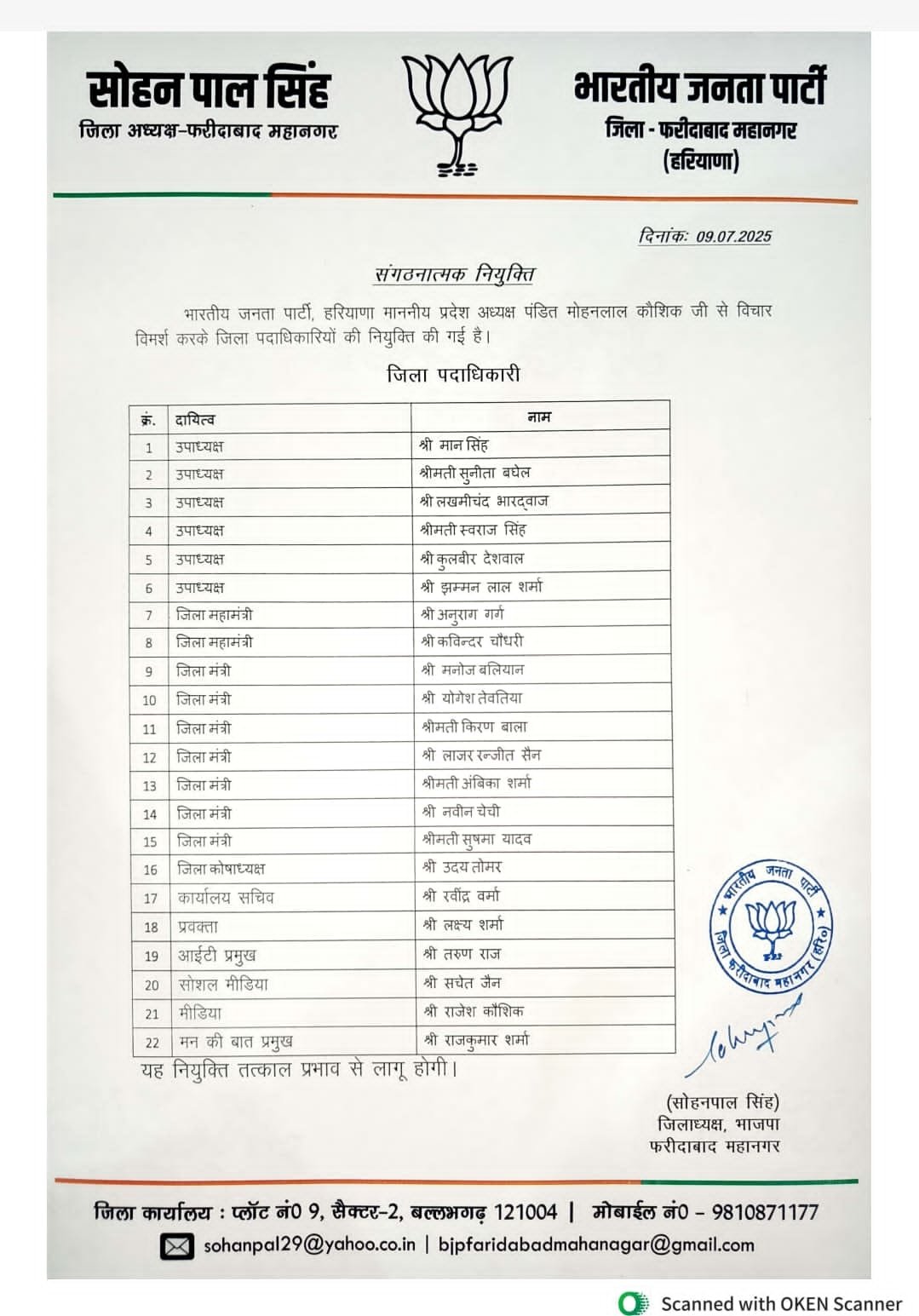 Haryana News: हरियाणा में भाजपा ने बड़े स्तर पर संगठनात्मक नियुक्तियाँ की है। देखें पूरी लिस्ट