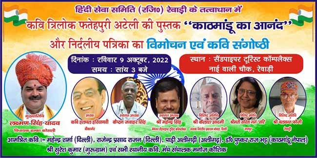 हिंदी सेवा समिति (रजि.) रेवाड़ी हरियाणा के तत्त्वाधान में राव चिरंजीलाल