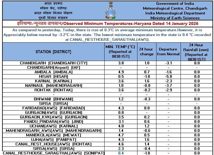 Haryana Weather Alert: हरियाणा में आज सुबह सोनीपत 0.4°सेंटीग्रेड के न्यूनतम