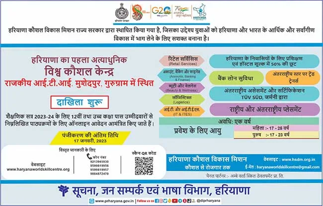 इसी उद्देश्य को पूरा करने के लिए प्रदेश सरकार की ओर से हरियाणा कौशल विकास मिशन के तहत राजकीय आईटीआई मुशेदपुर गुरूग्राम में हरियाणा के पहले अत्याधुनिक विश्व कौशल केंद्र की स्थापना की गई। हरियाणा के मुख्यमंत्री मनोहर लाल के दूरदर्शी विजन के चलते हरियाणा कौशल प्रशिक्षण के जरिए कौशल विकास केंद्र के रूप में विकसित हो रहा है।