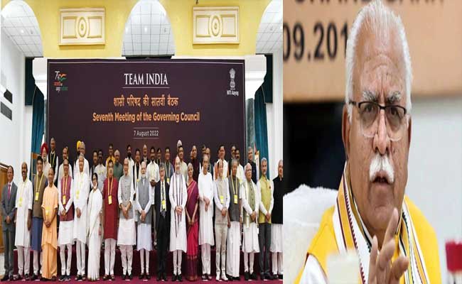 मुख्यमंत्री मनोहर लाल ने प्रधानमंत्री नरेंद्र मोदी की अध्यक्षता में रविवार को हुई नीति आयोग की गवर्निंग काउंसिल की 7वीं बैठक में हिस्सा लिया। इस अवसर पर मुख्यमंत्री ने कहा कि हरियाणा सरकार प्रधानमंत्री के कुशल नेतृत्व में आत्मनिर्भर भारत के विजन को साकार करने का हर प्रयास कर रही है और सतत आर्थिक विकास तथा समान सामाजिक व क्षेत्रीय विकास के एक नए युग का सूत्रपात करेगी।