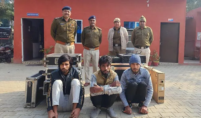 जब मैने चैक किया तो एम्पलीफायर-8, सार्फी लाईट-4, मिक्चर-4, कोडलैस माईक 2 सैट, हैलोजन-2, LED लाईट-20, पिच-4, मिक्चर पेटी-1, LED T.V. 32 इंच-1, मिक्सी-1, ड्रील मशीन-1 सामान नही मिला। सेक्टर-6 थाना पुलिस ने चोरी का मामला दर्ज कर जांच शुरू की थी। जांच के बाद पुलिस ने तीनों आरोपी गांव महेश्वरी की भगवान सिंह कालोनी निवासी ललित उर्फ पपला, विपिन पुत्र कुलदीप व लोकेश यादव को गिरफ्तार कर लिया। पुलिस ने आरोपियों से एक एलइडी टीवी, एक मिक्सी, पांच एमपलीफायर, दो सर्फी, दो मिक्सचर, एक पिच पेटी बरामद की है।